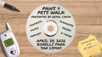 The Inland Valley Humane Society & S.P.C.A. invites the community to join the Paws 4 Pets Walk Presented by Royal Canin on Saturday, April 25, 2026, at Bonelli Park in San Dimas.